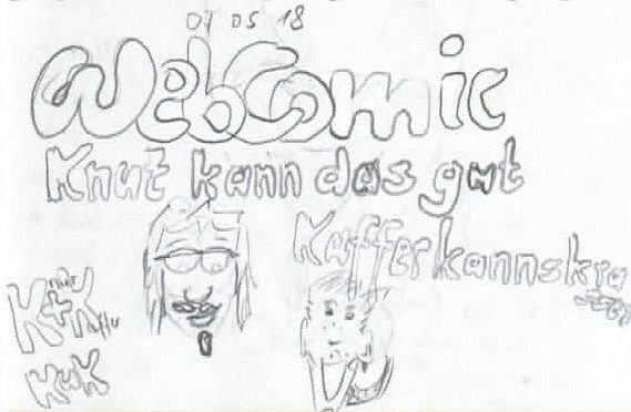 - es sind auch einige Skizzen dabei die unter einer Seite “Entstehung” einen Platz finden würden, da es Ursprünge vom 07. Mai 2018 gab, die noch “Knut & Kaffer” hießen zum Beispiel – auch sind die ersten Skizzen reich an Variationen